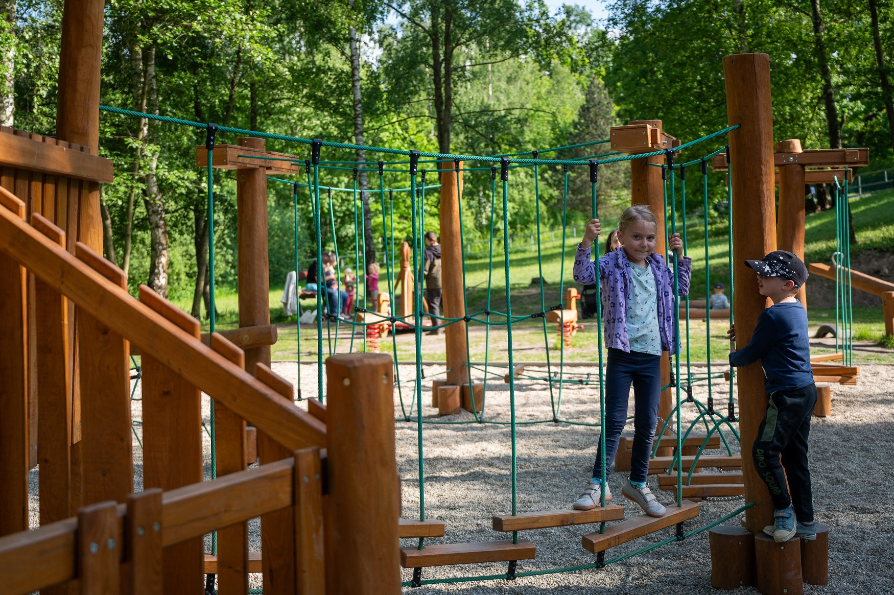 - Věžová sestava s lanovou dráhou pro děti od 3 do 15 let věku.