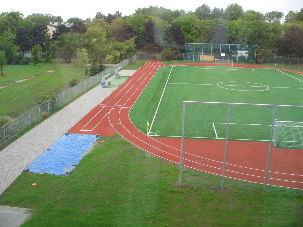 - Hřiště s umělým travnatým povrchem a atletickou dráhou lze využívat pro fotbal a atletiku.