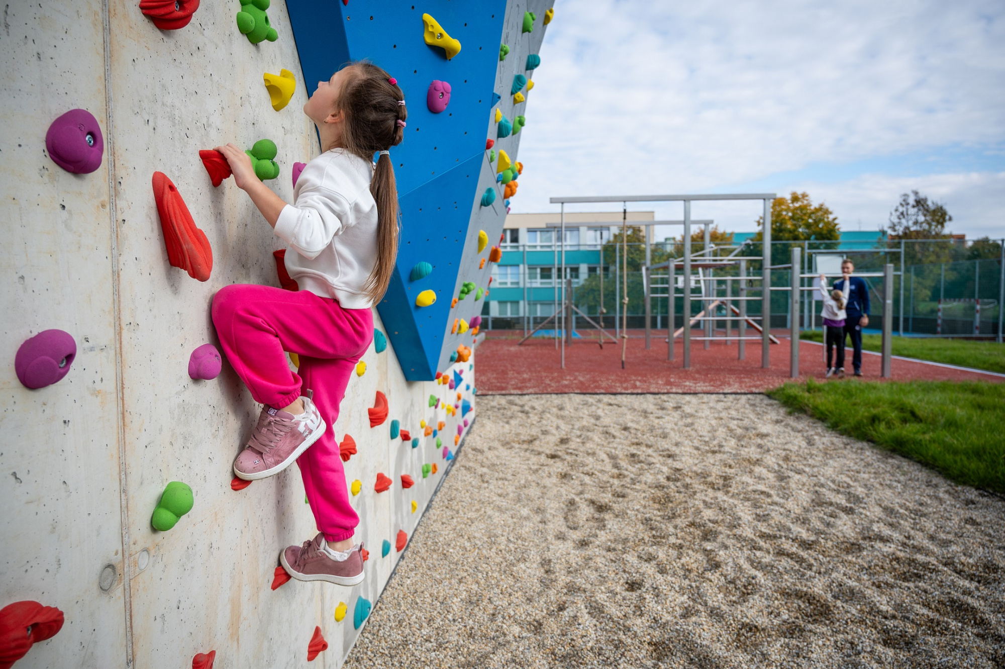 Hřiště a lezecká stěna v ZŠ B. Dvorského