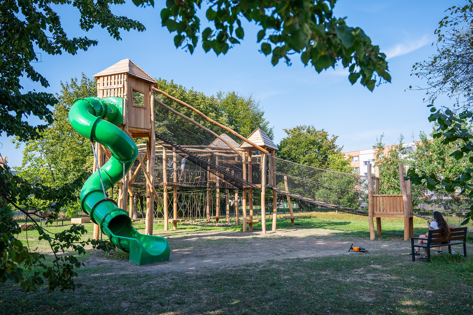 Víceúčelové hřiště a lanový hrad Jižák na zahradě ZŠ Jugoslávská