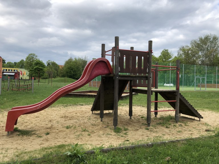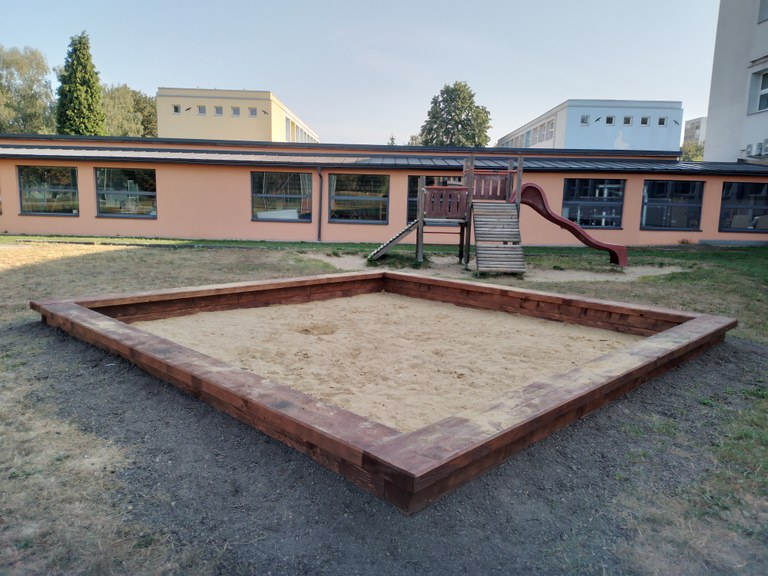 Na zahradě školy je momentálně přístupné pouze víceúčelové hřiště a pár dětských herních prvků, které se nacházejí v jeho blízkém okolí.