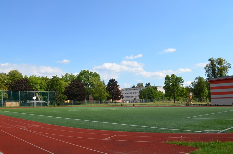 - Hřiště s umělým travnatým povrchem a atletickou dráhou lze využívat pro fotbal a atletiku.