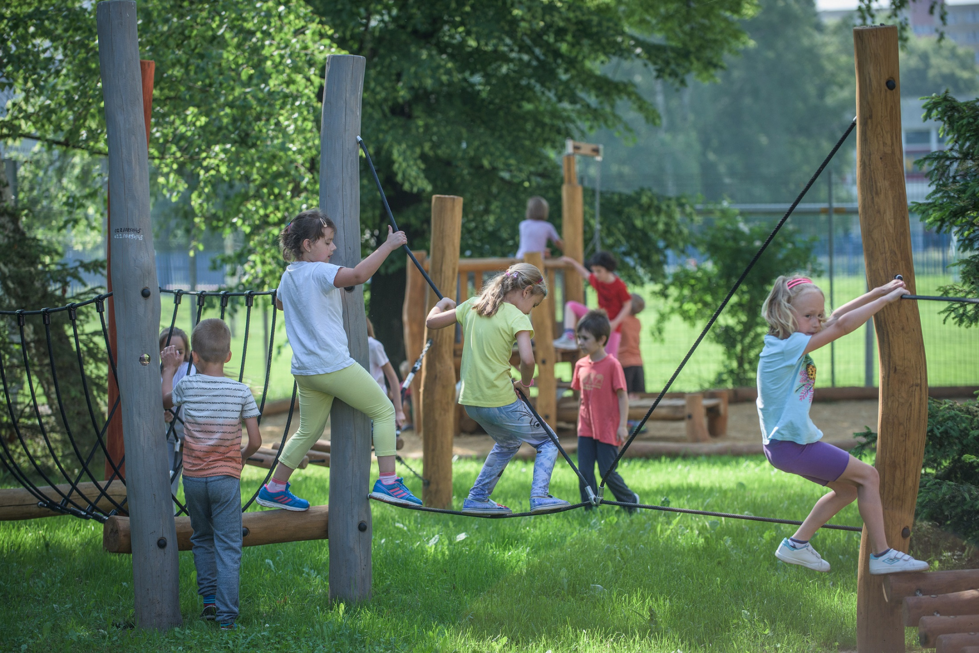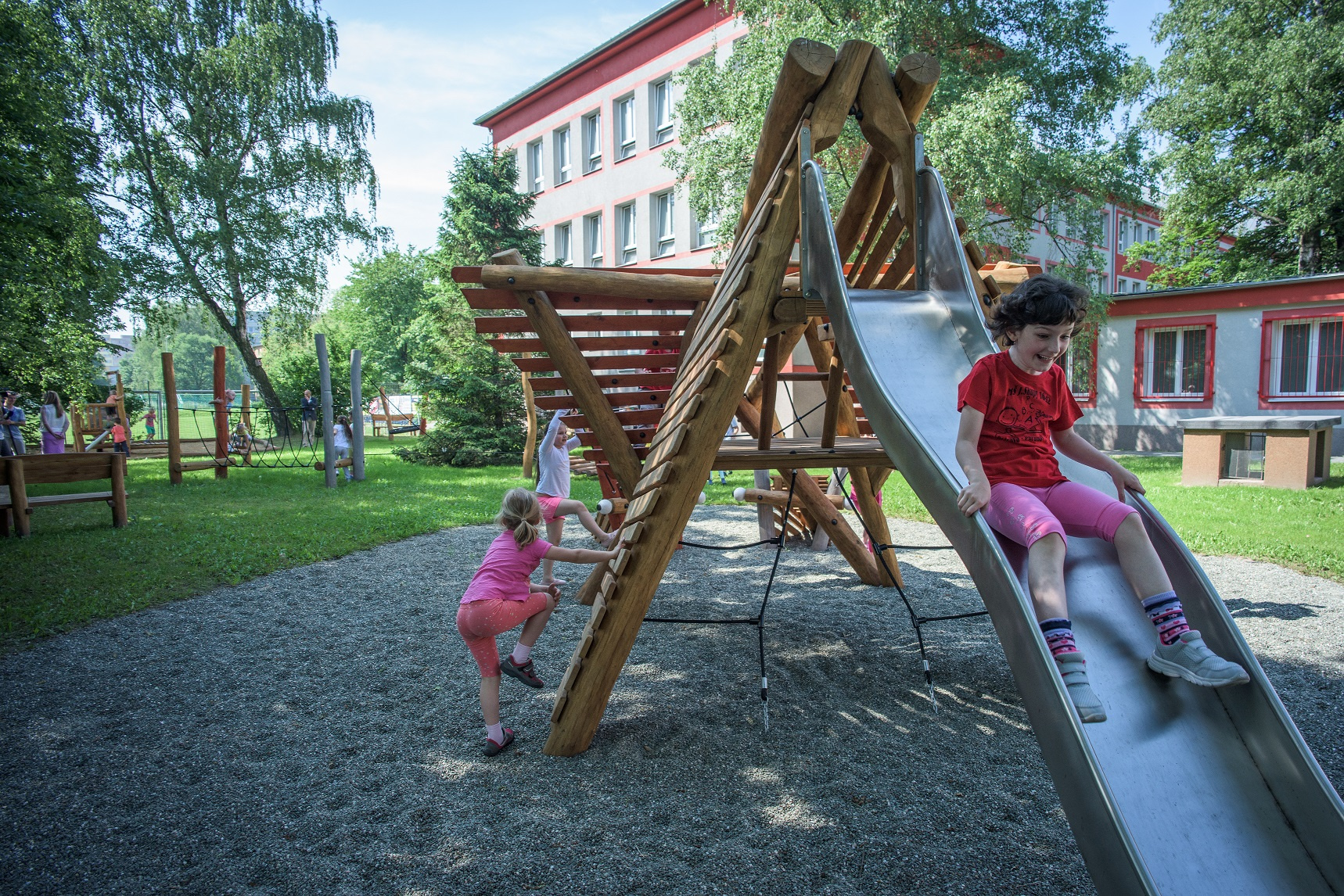 Dětské hřiště, sportoviště a relaxační zóna v ZŠ Provaznická