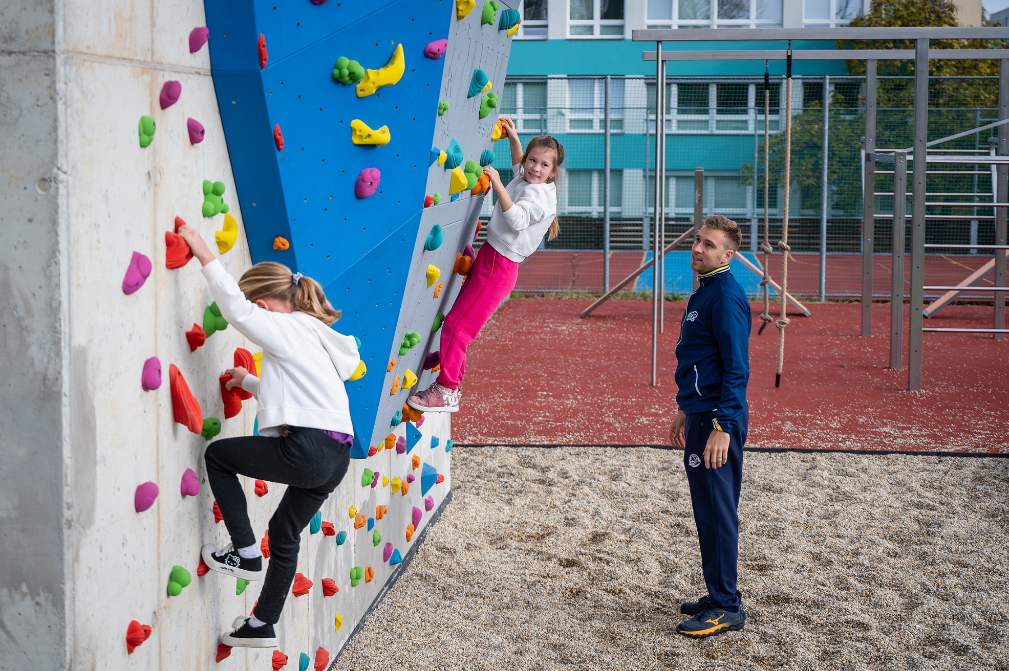 Hřiště a lezecká stěna v ZŠ B. Dvorského