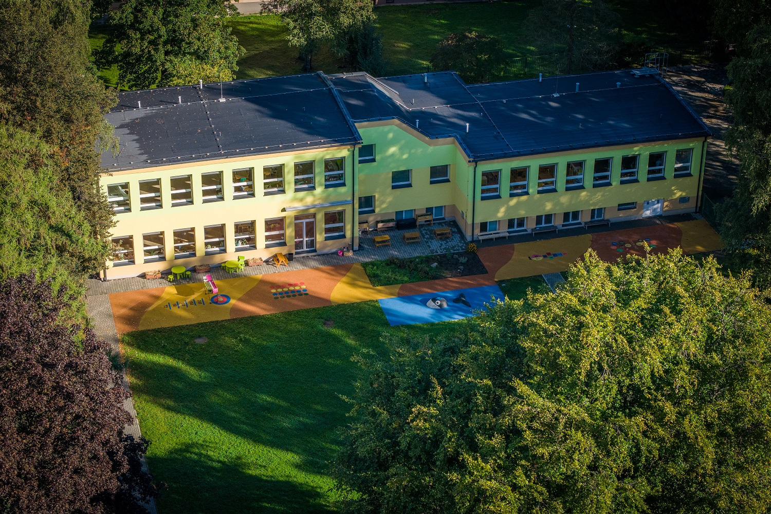 Školka je dobře dostupná autobusové i tramvajové dopravě. Samotná budova školy je třípatrová, usazená do rozlehlé udržované zahrady s různými herními prvky umožňujícími dětem rozmanité pohybové aktivity. V budově najdete tři třídy s přilehlými šatnami, samostatnou kuchyň v suterénu i sklepní prostory a v každé třídě zvířecího kamaráda.