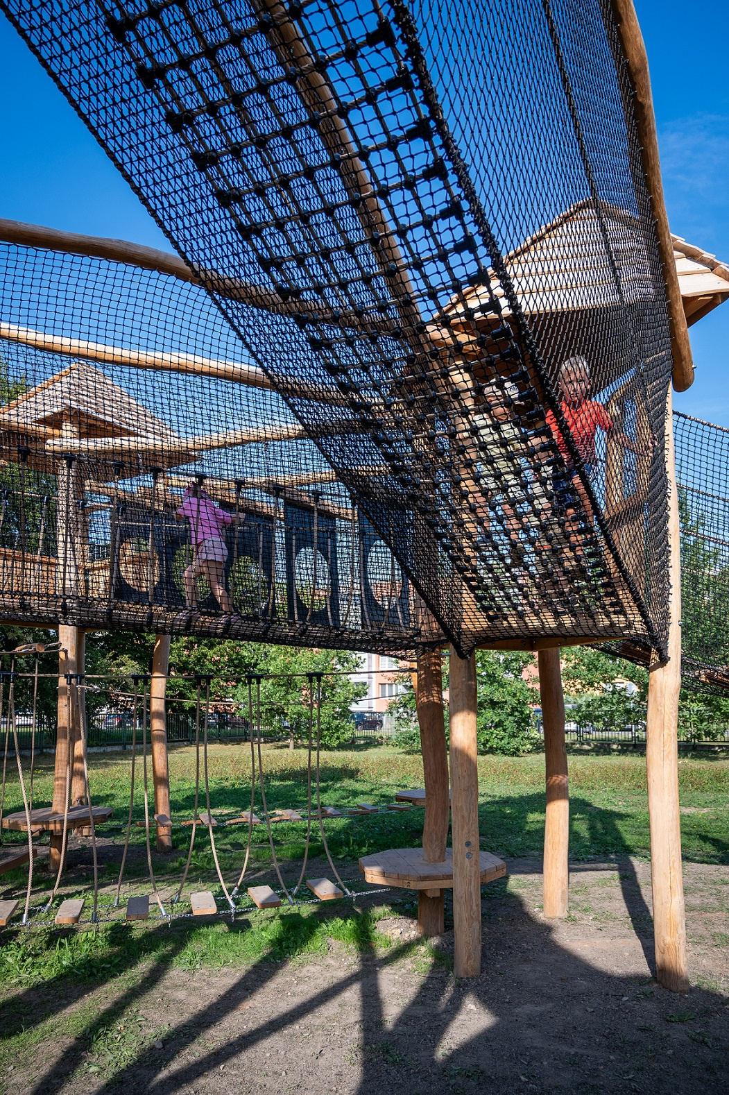 Víceúčelové hřiště a lanový hrad Jižák na zahradě ZŠ Jugoslávská