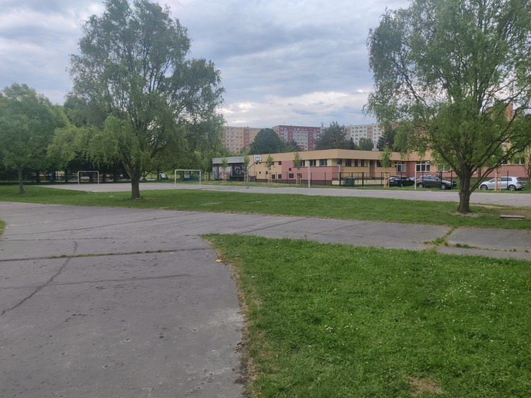 V areálu ZŠ Mitušova je možné využít využít hřiště na fotbal nebo basketbal, případně potrénovat běh na betonovém oválu.
